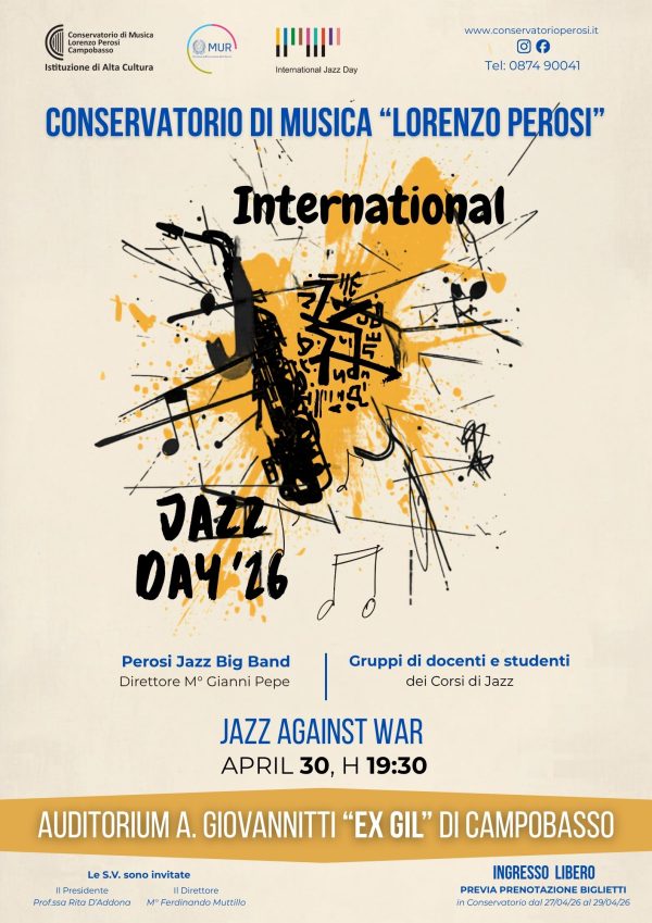 International jazz day 2026 at auditorium Conservatory of Perugia in collaboration with Umbria Jazz