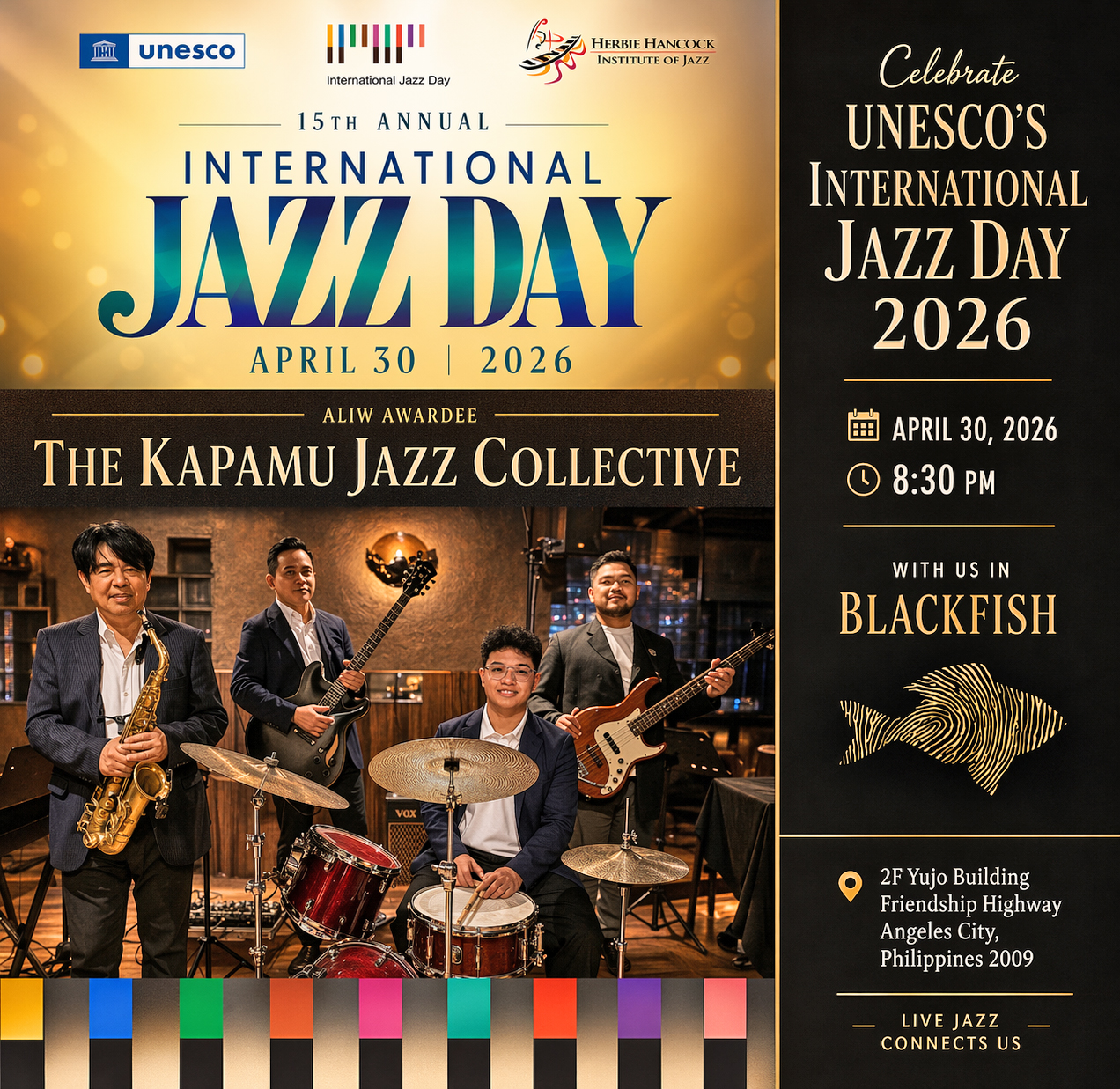 Celebrate an evening of music and connection with the Aliw Awardee KapaMu Jazz Collective at Blackfish.