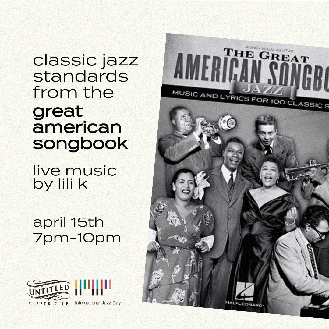 Enjoy beloved classics from the Great American Songbook performed live by Lili K. Settle into the warm, speakeasy atmosphere of Untitled, sip on a handcrafted cocktail, and let the smooth sounds of jazz carry you through the golden era of American music.