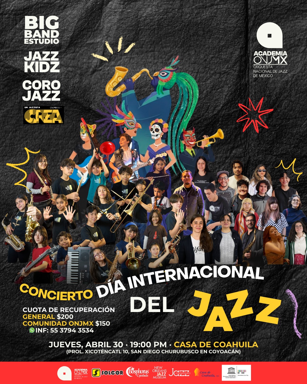 Concierto celebración del 𝘿𝙞́𝙖 𝙄𝙣𝙩𝙚𝙧𝙣𝙖𝙘𝙞𝙤𝙣𝙖𝙡 𝙙𝙚𝙡 𝙅𝙖𝙯𝙯 con la Big Band Estudio, 𝘽𝙞𝙜 𝘽𝙖𝙣𝙙 𝙅𝙖𝙯𝙯 𝙆𝙞𝙙𝙯, 𝘾𝙤𝙧𝙤 𝙅𝙖𝙯𝙯 𝙊𝙉𝙅𝙈𝙓 y 𝘾𝙍𝙀𝘼.
