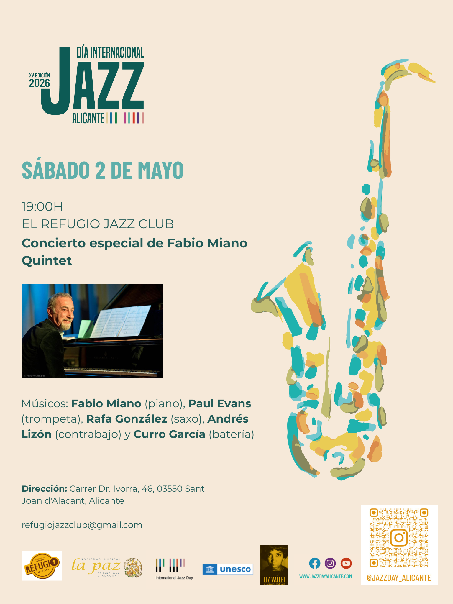 Músicos: Fabio Miano (piano), Paul Evans (trompeta), Rafa González (saxo), Andrés Lizón (contrabajo) y Curro García (batería).