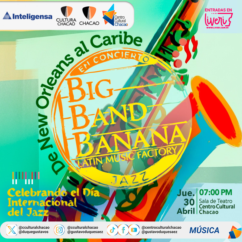 The Big Band Banana celebrates International Jazz Day with the concert "De New Orleans al Caribe" at the Centro Cultural Chacao, Caracas, on April 30th at 7:00 p.m.