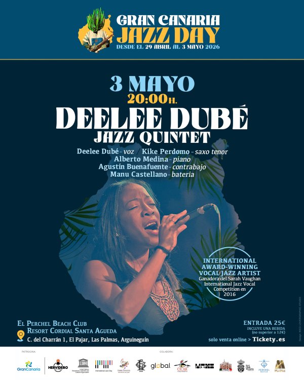 DEELEE DUBE is the headline artist closing the GRAN CANARIA INTERNATIONAL JAZZ DAY on a unique stage at the BEACH CLUB EL PERCHEL, in the south of Gran Canaria, within the Cordial Santa Agueda Resort in Arguineguín, El Pajar.