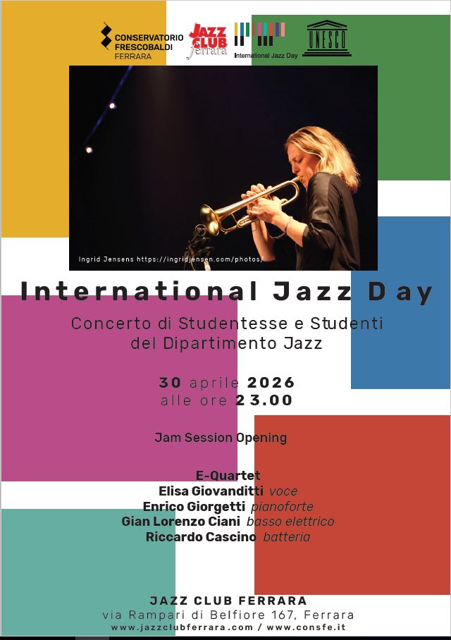 This award sends both musicians to the prestigious Siena Jazz Summer Workshops. To celebrate, a quartet featuring both winners will open the jam session at the Jazz Club on April 30th for International Jazz Day, highlighting Ferrara’s role as a bridge between academic study and the global jazz stage.