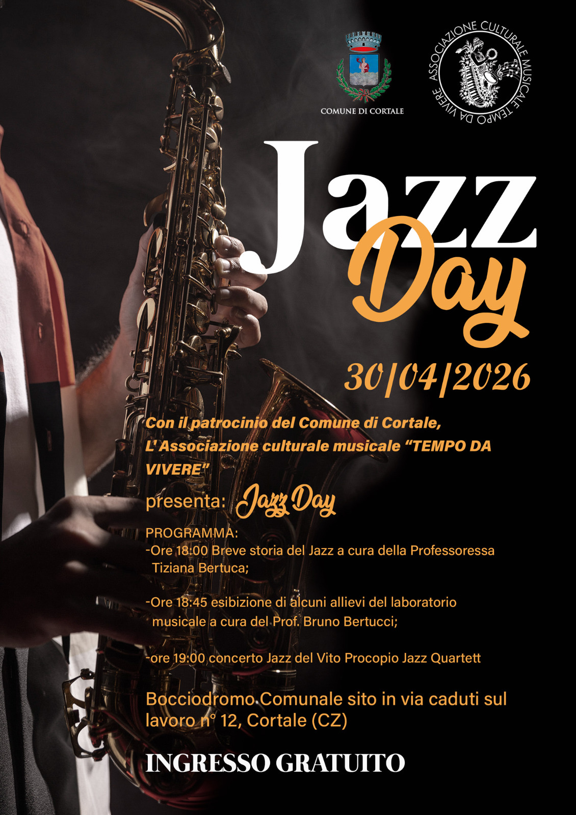 • Ore 18:00: Breve storia del Jazz a cura della Professoressa Tiziana Bertuca;