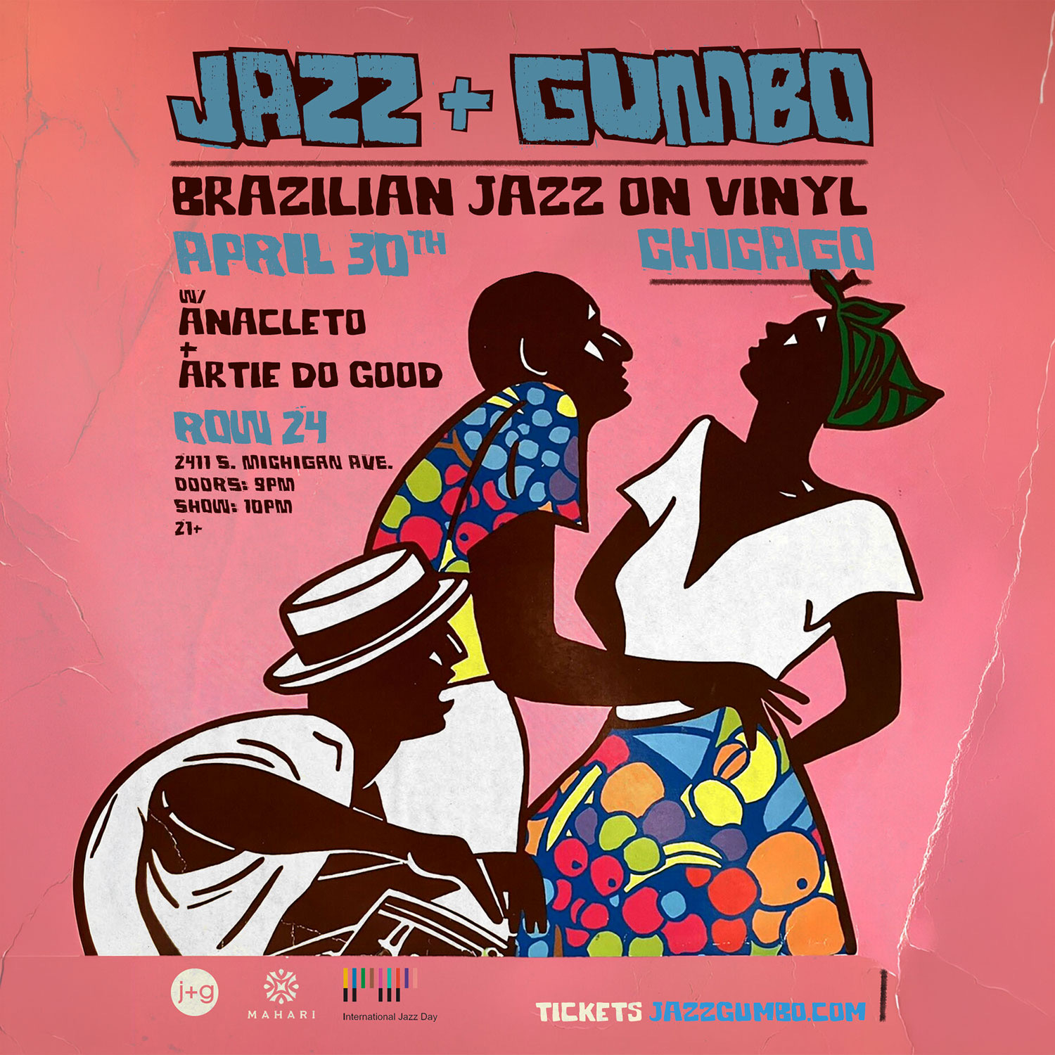 Join us for an intimate night of Jazz + Gumbo on Vinyl at Row 24 located in the South Loop in celebration of International Jazz Day. Gumbo prepared by award-winning Chef Rah available for purchase separately. As part of our International Jazz Day programming, we are producing a special Brazilian jazz night on vinyl, accompanied musician Artie Do Good.