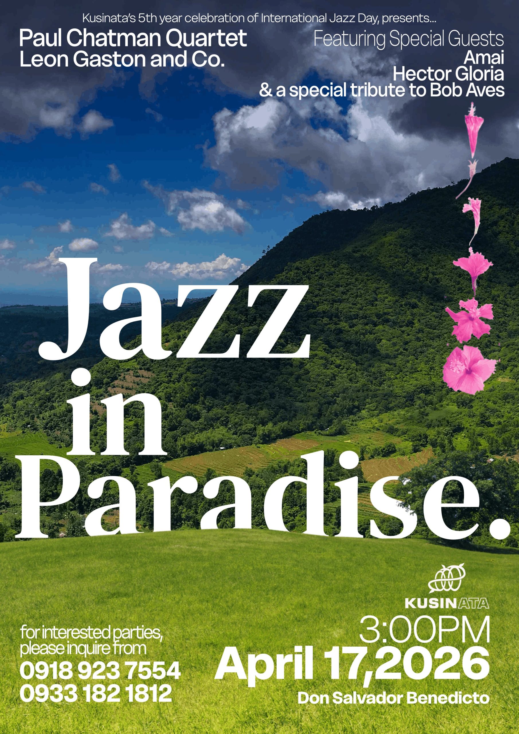 Jazz In Paradise 2026 is an advocacy concert celebrating International Jazz Day, set in the scenic highlands of Don Salvador Benedicto. This annual fundraising event supports the Ata indigenous community, helping build a medical assistance fund and sustainable livelihood programs. The afternoon features live performances by the Paul Chatman Quartet and Leon Gaston and Co., with guest appearances from Hector Gloria and Amai. Guests can enjoy jazz, community, and nature, along with a brief tribute to Negrense jazz artist Bob Aves.
