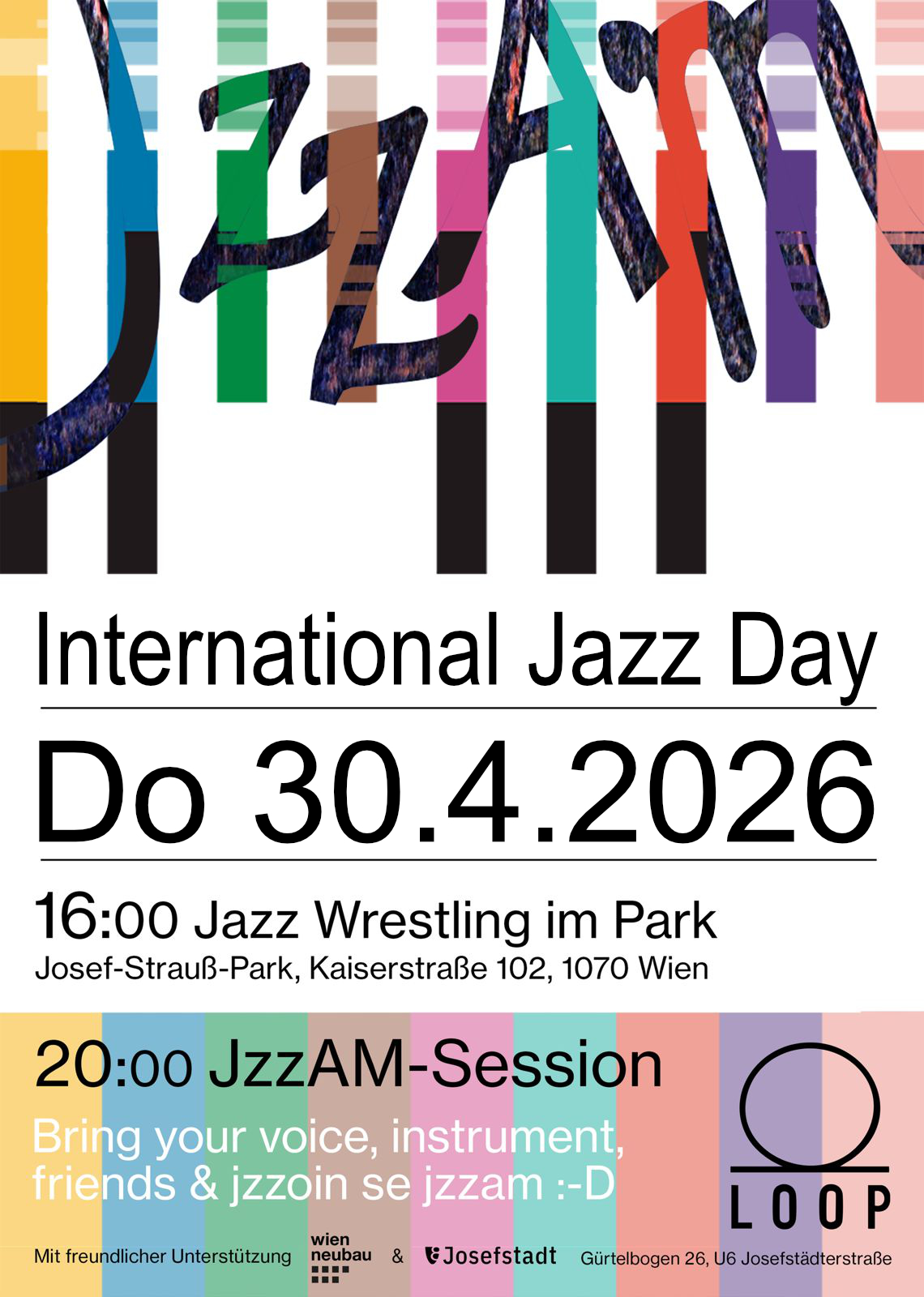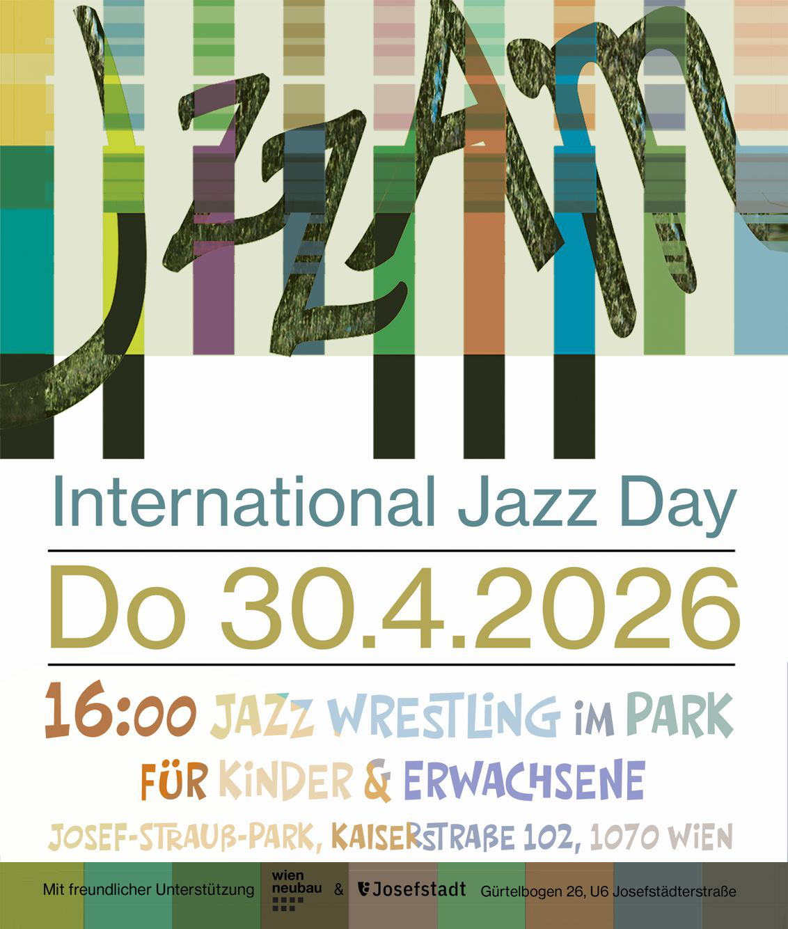 On April 30, starting at 4 p.m., the unique format JazzWrestling will take place. A fun and educational concert for all ages invites the audience to actively participate. The musicians wear lucha masks and wrestle with jazz. Kids count in, sing along, and throw soft, fluffy balls. Jazz is fun. First held in 2025 at Josef Strauß Park in Vienna’s 7th district, the event was met with an enthusiastic audience. Join the JzzAM!