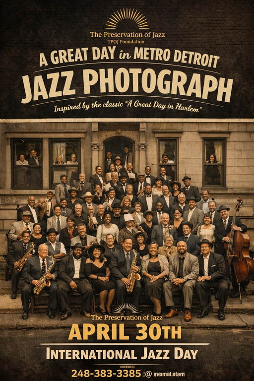 In celebration of International Jazz Day (April 30, 2026), Sky Covington’s Preservation of Jazz, in partnership with LadyLove Music®, Aretha’s Jazz Café, and Cafe Chronicles, presents a powerful cultural experience honoring jazz past and future. The evening features A Great Day in Metro Detroit Jazz Photograph, inspired by the iconic Harlem image, followed by Out of the Mouth of Babes, where rising young artists embody jazz legends like Billie Holiday and Nat King Cole. This event unites community, preserves legacy, and celebrates the next generation of jazz.