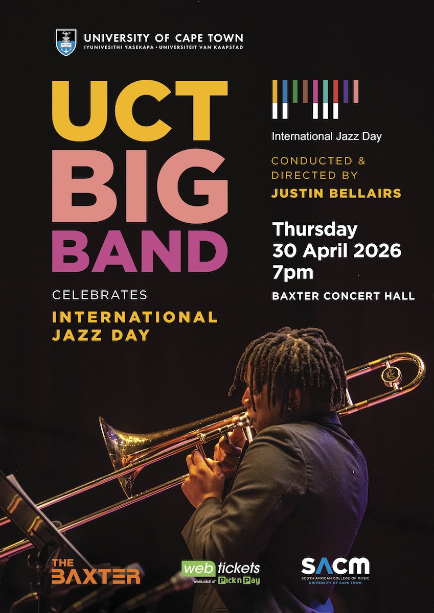 Join the UCT Big Band at the Baxter Theatre on April 30th in celebration of the 15th anniversary of International Jazz Day. Under the dynamic direction of Justin Bellairs, the band will perform a rich repertoire encompassing various jazz styles.