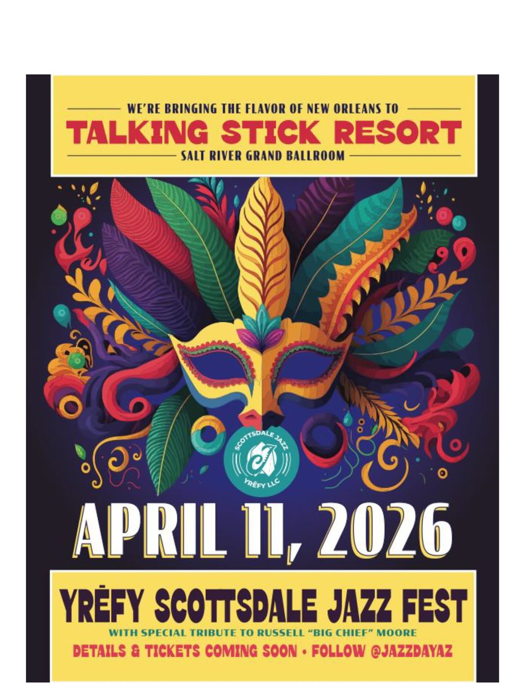 The celebration on April 11 with the Yrēfy 9th Annual Scottsdale Jazz Festival, hosted at Talking Stick Resort, marks the festival’s first year at our new home venue.